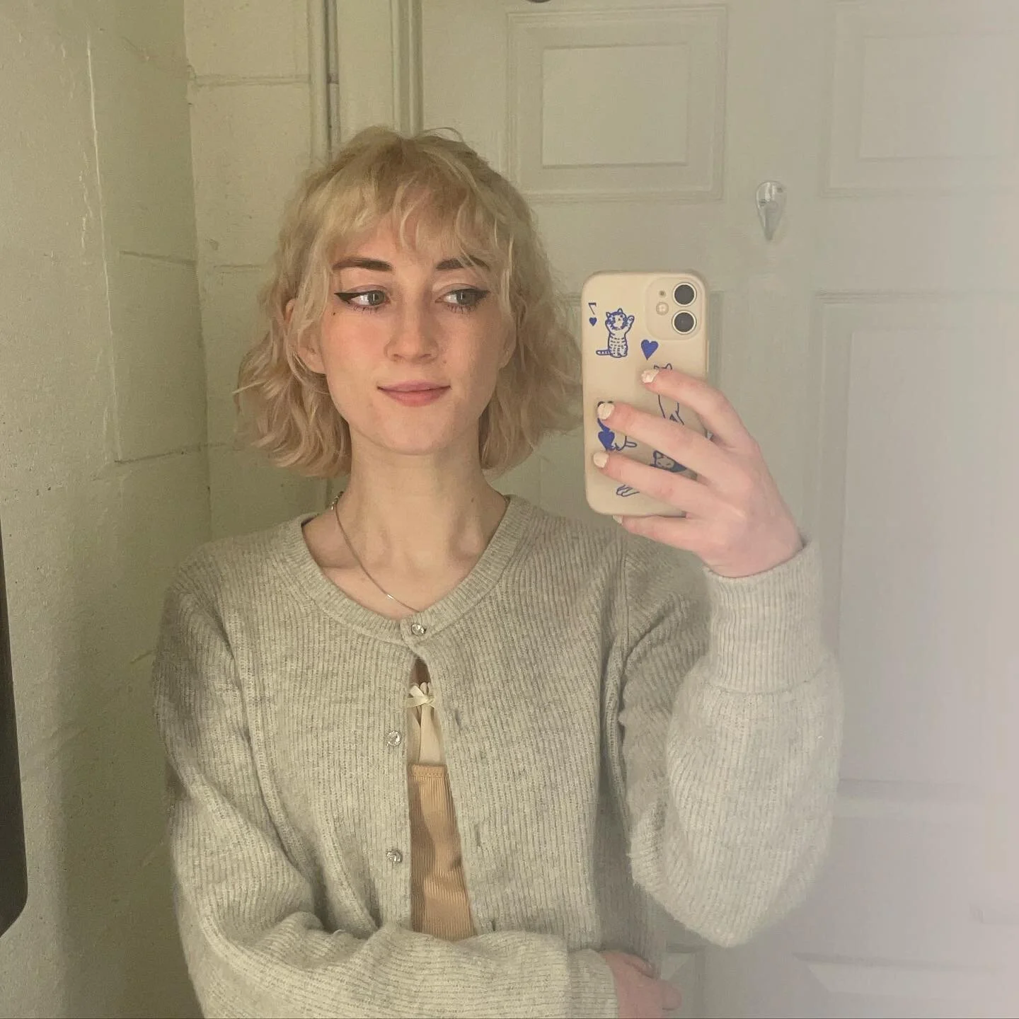 A more formal “about me”: I was born in Indiana and moved to Nashville to major in Songwriting at Belmont University. I also double majored in International Politics. Here are some of my favorite things: ramen, thrift stores, camembert, really big green fields, scary movies, q tips, oat milk lattes, and poetry. Here are some of my least favorite things: traffic jams, carpet floors, doctors appointments, fennel, hot weather, and the ocean. I am an independent artist, I currently work at a furniture store to make money and I make music whenever I have the chance. I love designing the graphics and imagery for my releases, I make the cover art and website graphics myself. All lyrics and melody to any song are written by me!
